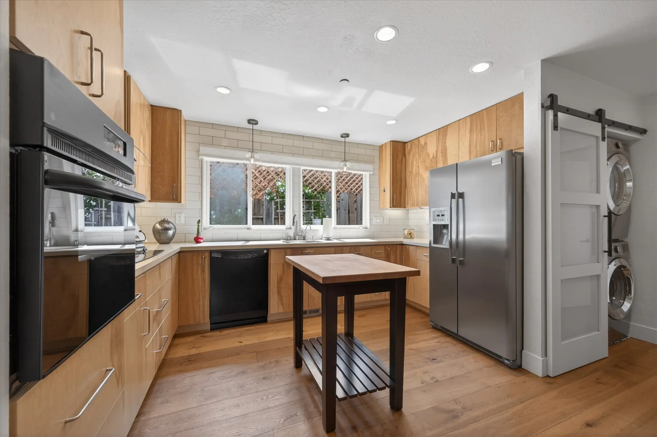 Cool mid-century style defines this 1,421 sq ft, 2 bedroom, 2 bathroom home (plus private office – not included in sq ft) tucked at the end of a quiet street, just moments from walking and biking paths to downtown.